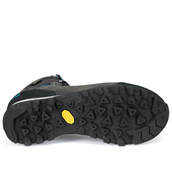 The Makra Light Lady GTX is an agile all-rounder for via ferratas and easier alpine tours. It's the perfect height and has all the characteristics required for a range of activities. And it's very versatile too. Because footwear to see you safely over iron pins, ladder rungs and rocky ledges has to be particularly solid to be able to withstand the constant loading. At the same time, it has to provide the wearer with a good 'feel'for the terrain underfoot. And if it's going to be comfortable going uphill and downhill, then it has to be built on a well cushioned base that promotes smooth roll-off performance. But that's not all the mid-cut Makra Light Lady GTX can do. It's designed for mountain enthusiasts who appreciate the benefits of a low-cut model on the ascents but are unwilling to do away with the additional stability offered by a mid-cut design on the descents. By incorporating a special 2-zone lacing system with mechanical lace lock system, the upper is easily adapted to the demands of the terrain in question. Unlike conventional clamping lace hooks, this mechanical style of lace lock won't slip once it's locked in place - it requires manual intervention to unlock it. This makes it possible to have tighter lacing at the ankle and more relaxed lacing at the upper section of the boot, for example, for greater freedom of movement on ascents or when climbing. While for descents, the entire lacing can be locked down above the ankle too, for greater stability. In addition to a flexible, adjustable upper, the Makra Light Lady GTX has a particularly lightweight, precise-fitting, cushioning midsole that provides the stability required for demanding terrain.