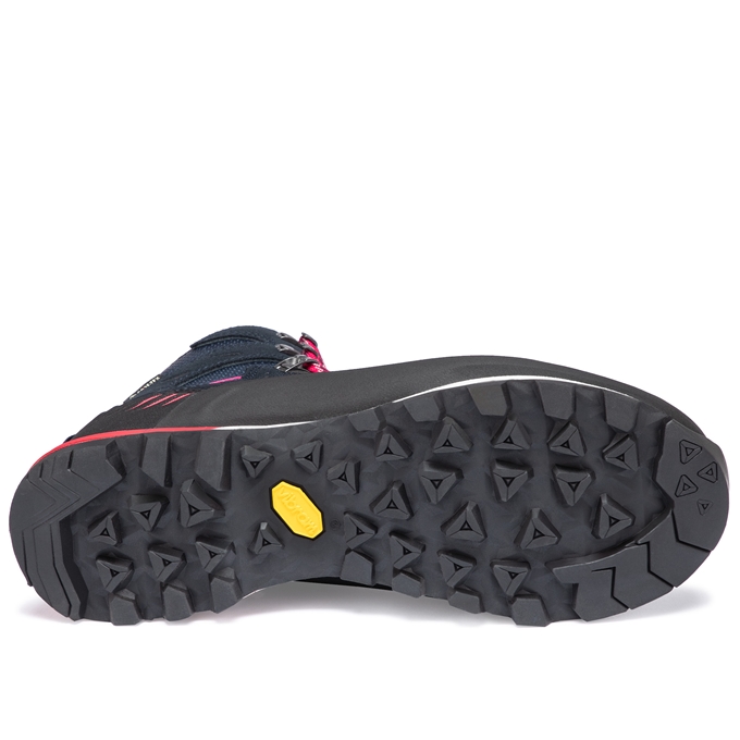 The Makra Pro Lady GTX is ideal for demanding alpine tours with glacier crossings and also easier summer high-alpine tours and rock routes. The lightweight, sturdy all-rounder has a lightweight, waterproof GORE-TEX membrane and a long-lasting durable Perwanger leather upper. For the lightweight, yet particularly stable midsole, we use a combination of PU, TPU and EVA. PU at the heel for perfect cushioning - an integrated TPU crampon welt for secure attachment - and EVA at the forefoot for greater precision. The Vibram Makra outsole ensures excellent grip. Together they make a dream team. The 'Hanwag 2 Zone Lock'with mechanical lace lock improves the fit at the heel. Unlike conventional clamping lace hooks, the mechanical lace lock remains fixed in place and cannot slip unless manually adjusted. The optimised ghilly lacing is a distinctive feature of the Makra family - it runs through textile loops right down into the toe area. This ensures a secure fit around the front of the foot, and good overall stability for a mid-cut model. And the Alpine Wide Last ensures more room at the forefoot for greater comfort, without sacrificing precision and climbing performance.