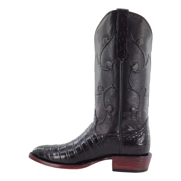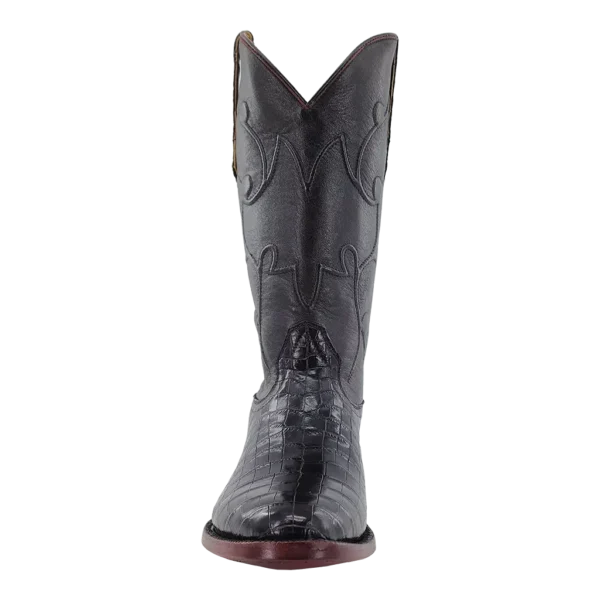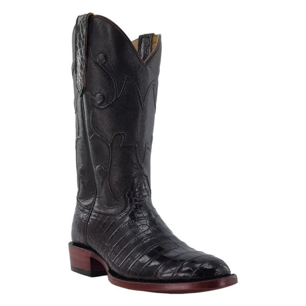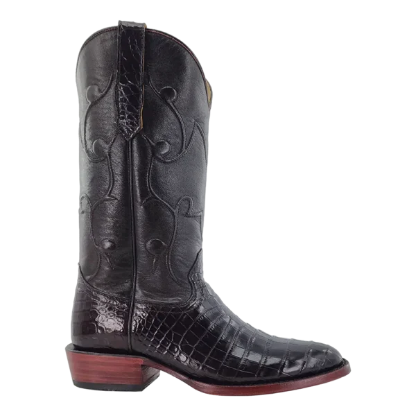 R. Watson presents these Nile crocodile and goat exotic western boots. These boots have a corded stitch pattern, R. Watson comfort system, all leather stacked heel, counters, solid steel shank, and 10 iron outsole. 13" total in height.