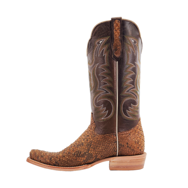 R. Watson presents these sueded back cut python and cowhide exotic western boots. These boots have a 10 row stitch pattern, R. Watson comfort system, all leather stacked heel, counters, solid steel shank, and 10 iron outsole. 13" total in height.