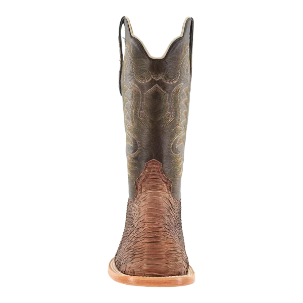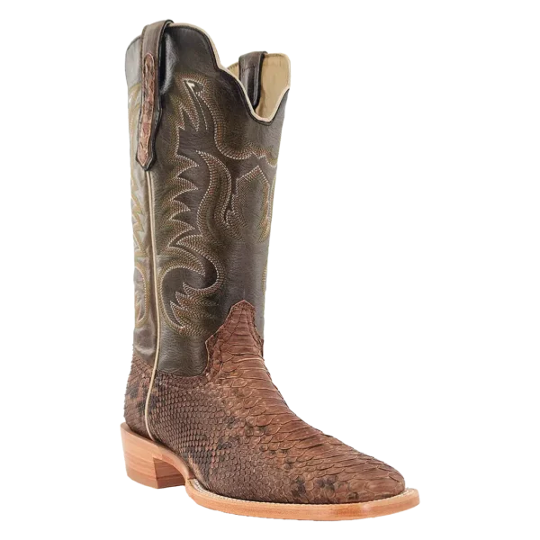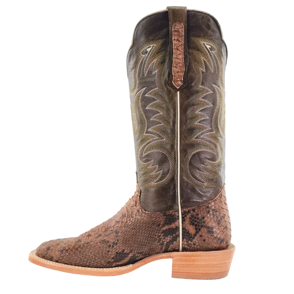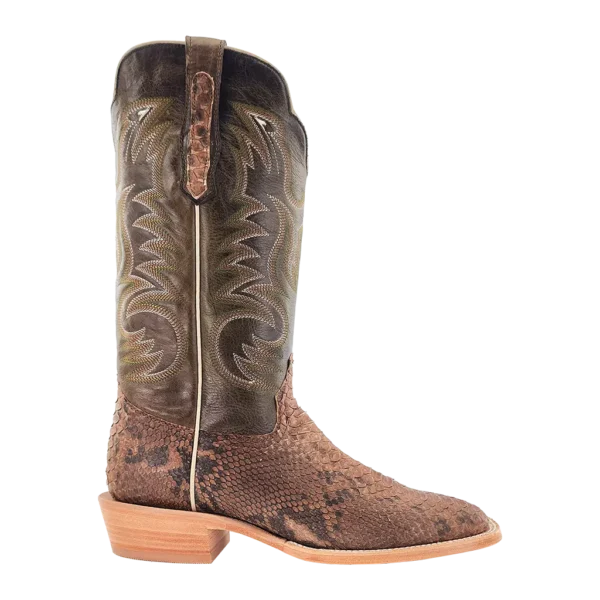 R. Watson presents these back cut python and cowhide exotic western boots. These boots have a 10 row stitch pattern, R. Watson comfort system, all leather stacked heel, counters, solid steel shank, and 10 iron outsole. 13" total in height.