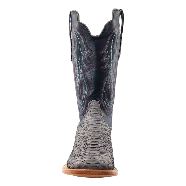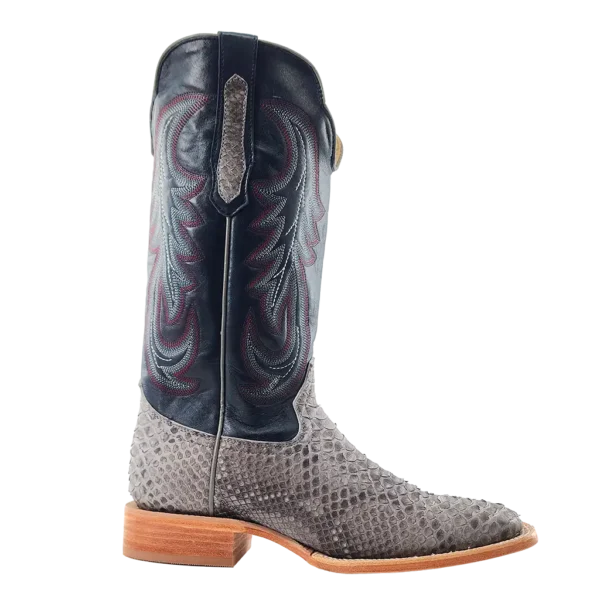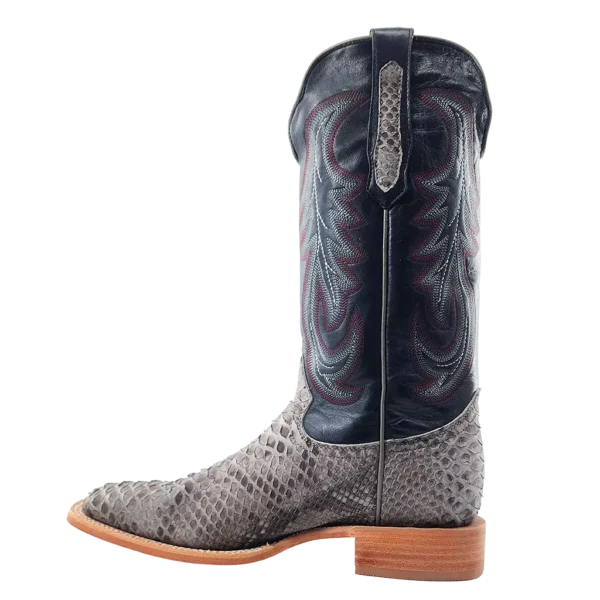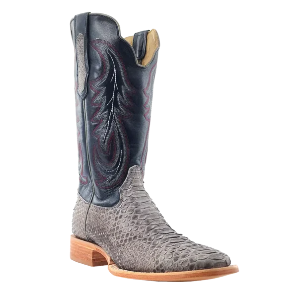 R. Watson presents these back cut python and cowhide exotic western boots. These boots have a 10 row stitch pattern, R. Watson comfort system, all leather stacked heel, counters, solid steel shank, and 10 iron outsole. 13" total in height.