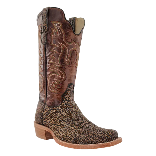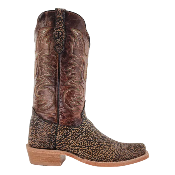 R. Watson presents these shrunken shoulder and cowhide exotic western boots. These boots have a 10 row stitch pattern, R. Watson comfort system, all leather stacked heel, counters, solid steel shank, and 10 iron outsole. 13" total in height.