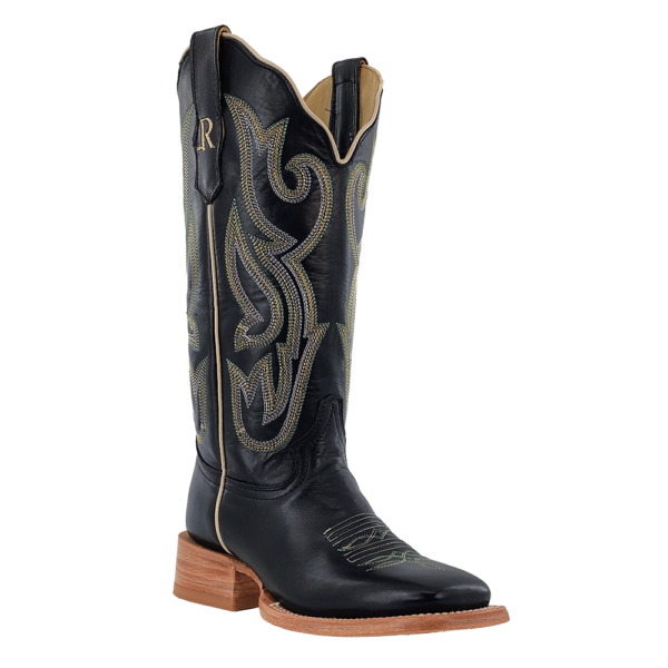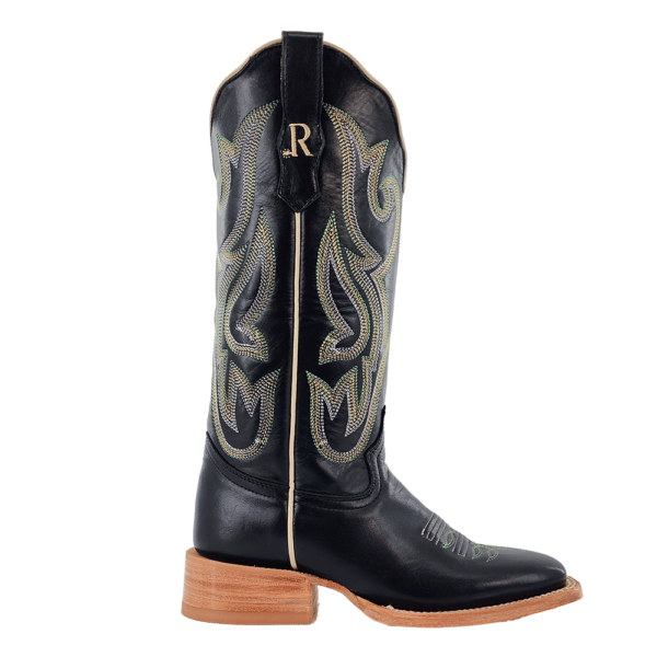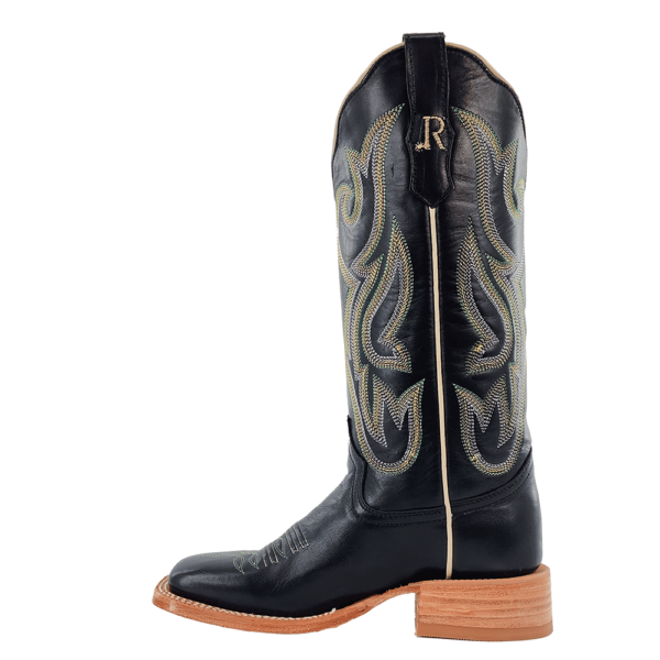 R. Watson presents these top and bottom calf western boots. These boots have a 10 row stitch pattern, R. Watson comfort system, all leather stacked heel, counters, solid steel shank, and 10 iron outsole. 13" total in height.
