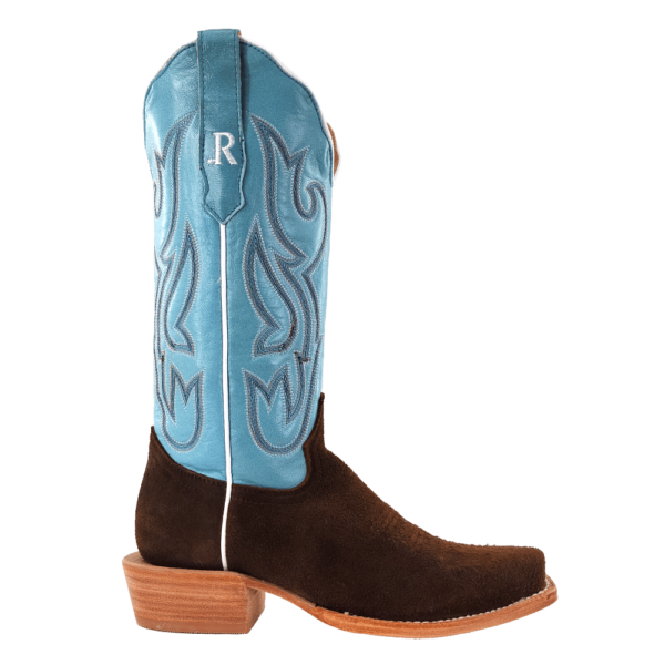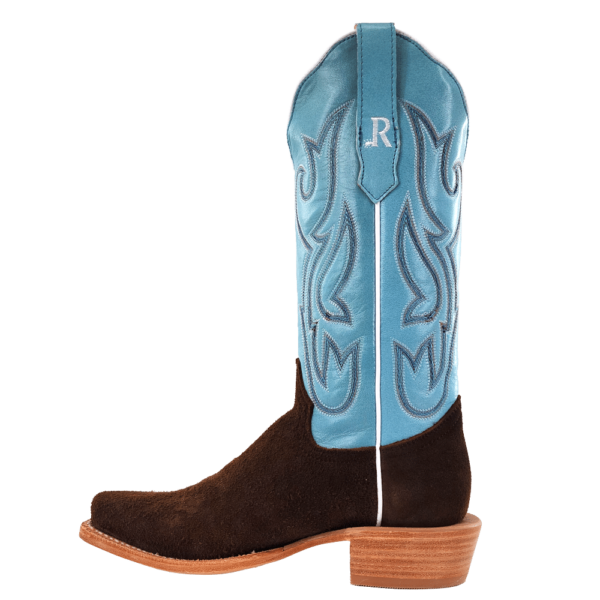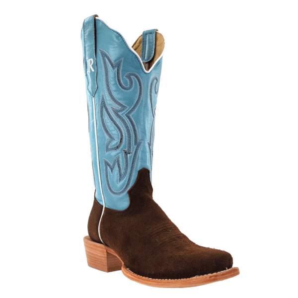 R. Watson presents these rough out and goat western boots. These boots have a 10 row stitch pattern, R. Watson comfort system, all leather stacked heel, counters, solid steel shank, and 10 iron outsole. 13" total in height.