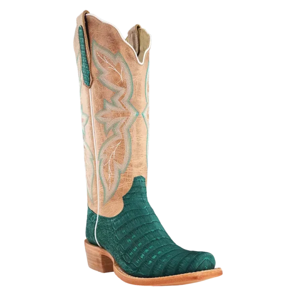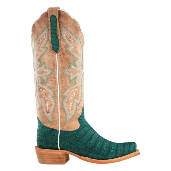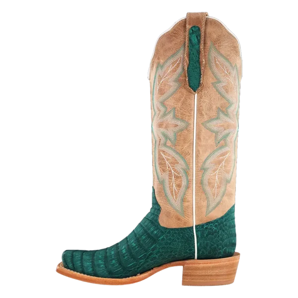 R. Watson presents these nubuck caiman belly bottom and cowhide top exotic western boots. These boots have the R. Watson comfort system, all leather stacked heel, counters, solid steel shank, and 10 iron outsole. 13" total in height.