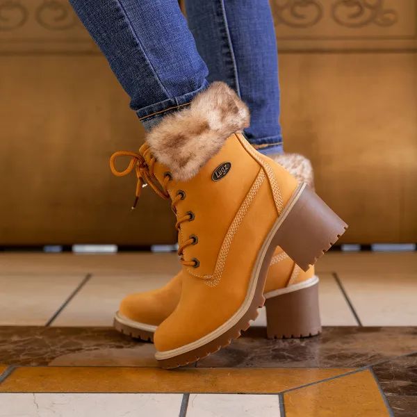 Inspired by the classic 6 inch boot, but sporting a high heeled feminine twist with a touch of fur, you can style the Lugz Women's Clove Fur with just about anything. These lace up winter boots will keep you stylish and comfortable with every step.