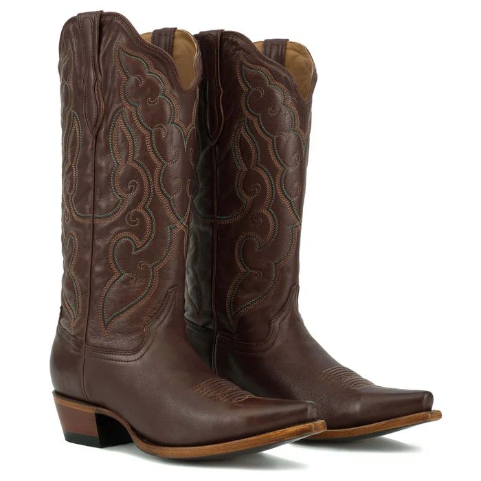The Marta is the elegant, tall-shafted caravan calfskin addition to every cowgirl's collection. Coming in two beautifully rich colors, Saddle and Onyx, The Marta is perfect for formal and informal occasions. The 14" shaft height features a gorgeous handstitched design that perfectly compliments the timeless snip-toe shape.