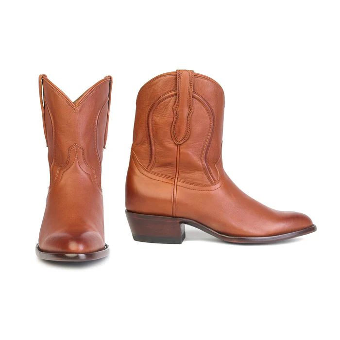 The Myra is a Cowgirl Bootie handcrafted from RUJO's supple Caravan Calfskin. Joined with our famous Cloud Walk Memory Foam insole, technology, the Myra delivers top-notch quality and comfort. The Myra features a 2.5" heel and an iconic R-Toe shape.
